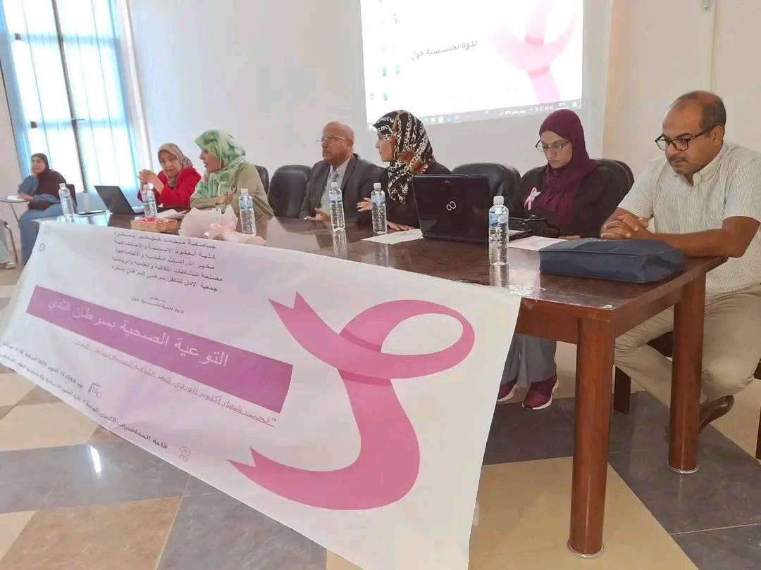 في إطار إحياء الشهر الوردي، أشرفت مصلحة الأنشطة لكلية العلوم الإنسانية والإجتماعية بالتنسيق مع مخبر الدراسات النفسية والإجتماعية، وكذا جمعية الأمل لمرضى السرطان بولاية بسكرة، ندوة علمية تحسيسية حول التوعية الصحية بسرطان الثدي، وذلك يوم الثلاثاء 14 أكتوبر 2025، بإشراف عميد كلية العلوم الإنسانية والاجتماعية الأستاذ الدكتور نصر الدين جابر.